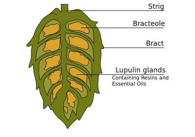 Lupulin, gewonnen aus harz-ähnlichen Kügelchen, die sich hinter der verdeckten Oberfläche der Kelchblätter einer weiblichen Hopfenpflanze verstecken, ist ein Stoff, welcher die Effekte von Hopfen deutlich verstärkt. Typischerweise werden die Lupulindrüsen zu Pulver weiterverarbeitet. Die Drüsen haben eine gelbe teilweise leicht bräunliche Färbung. Lupulin-Chemische Zusammensetzung Betrachtet man die molekularstruktur vom Lupulin, so ist sie sehr ähnlich der Sturktur von