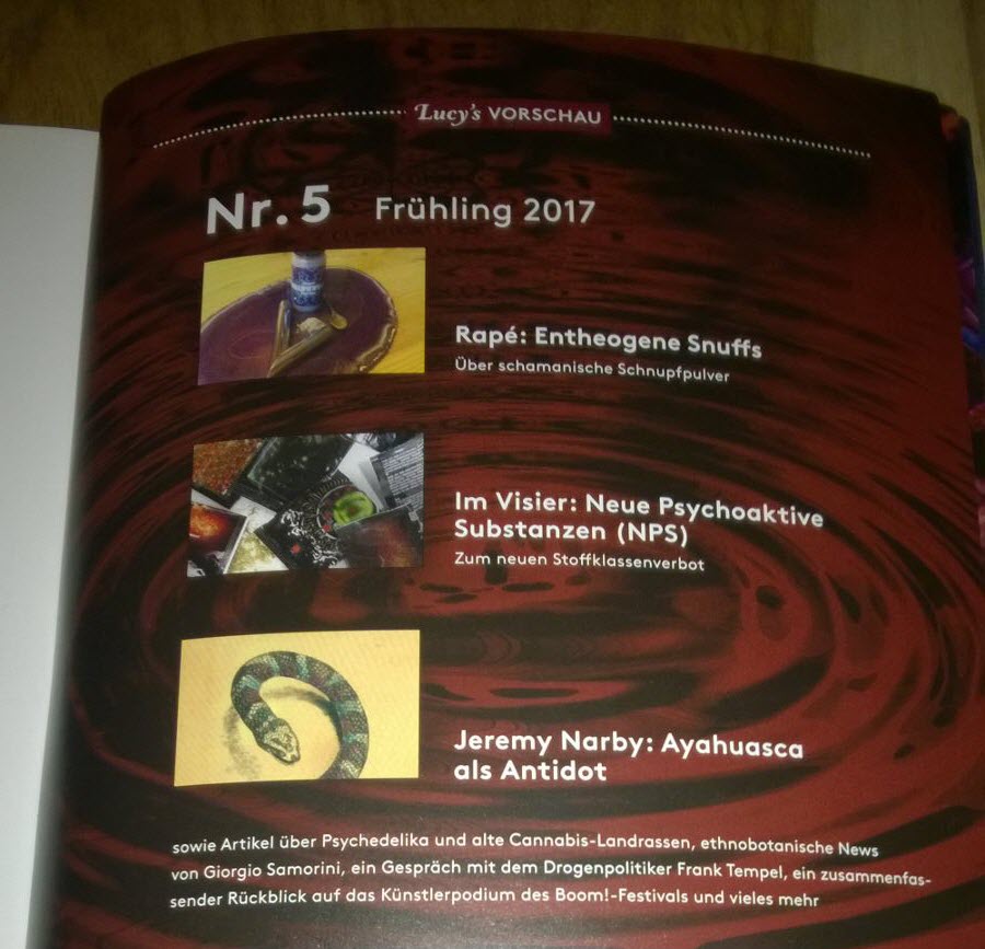 Mit Lucys Rausch Nr 4 geht das Gesellschaftsmagazin für psychoaktive Kultur und Wissenschaft in eine weitere neue Auflage. Lucys Rausch wendet sich an Einsteiger und erfahrene Psychonauten und vermittelt Hintergrundwissen zu diversen psychoaktiven Substanzen, welche in allen gesellschaftlichen Schichten diskutiert werden.